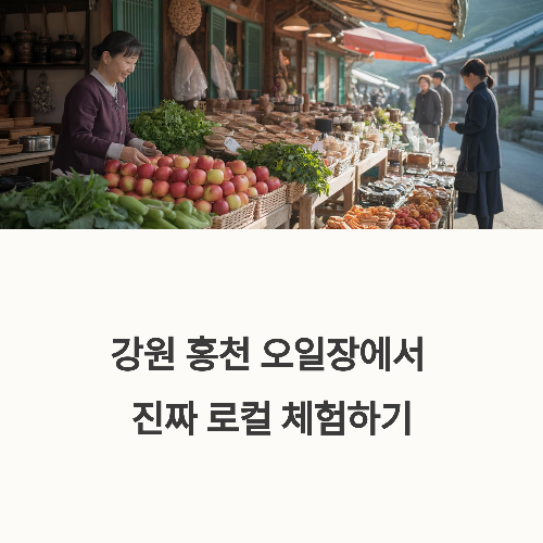 홍천 오일장은 관광객을 위한 시장은 아니지만, 강원도의 진짜 생활과 인심, 정직한 먹거리가 가득한 곳입니다. 장날에 맞춰 여행 일정을 짜면 로컬스러운 경험과 쇼핑, 먹거리 투어를 모두 즐길 수 있어요.