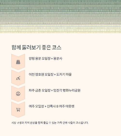 | 양평군 | 용문 오일장 | 5일, 10일 | 관광지+장터 혼합 형태 |