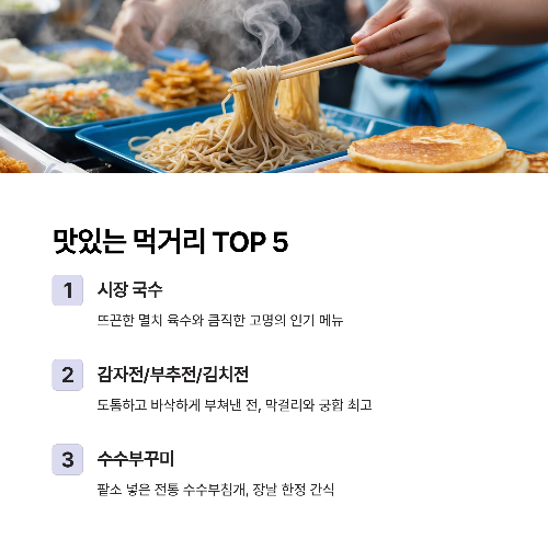 전통 + 생활 + 사람 냄새 + 먹거리가 모두 살아 있는 진짜 장터입니다.