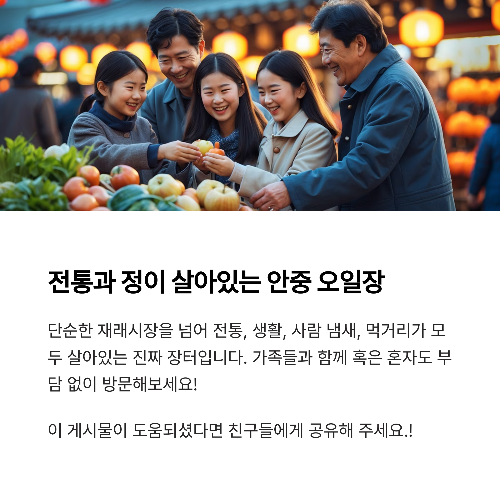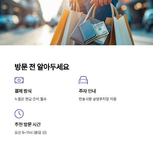 | 🛍 시장 구성 | 안중전통시장 내 상가 + 장날 노점 구간 대규모 운영 |
