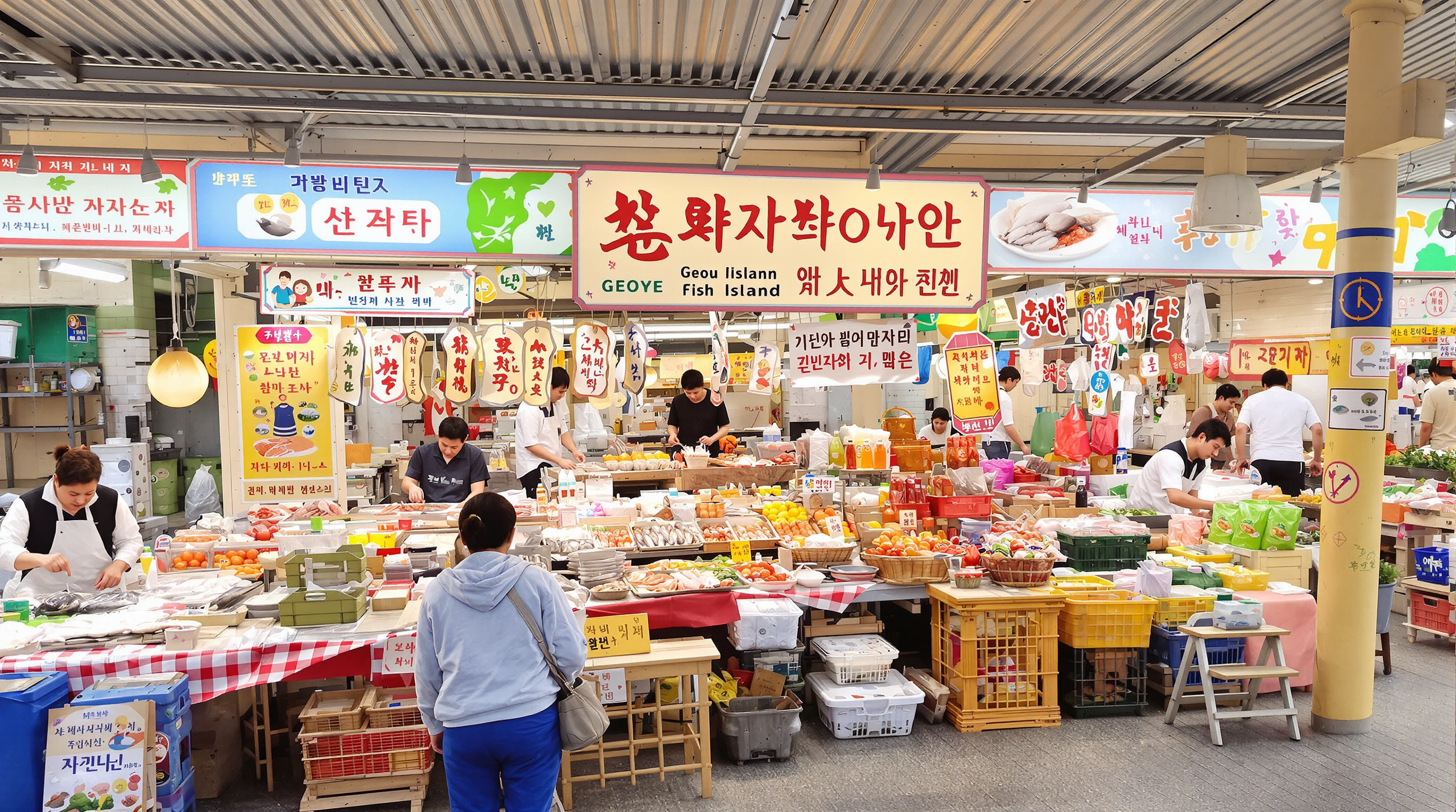 반찬 진열대, 떡 노점, 수산물 코너 등 인스타감
