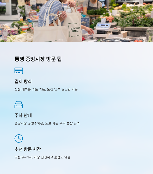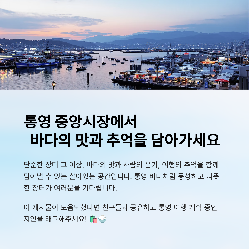 통영 바다처럼 풍성하고 따뜻한 장터가 여러분을 기다리고 있습니다. 🐟🛍️🍚