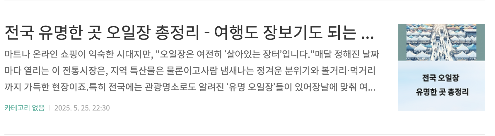 즉, 5일 간격으로 돌아오는 전형적인 전통시장 방식을 따르고 있죠.