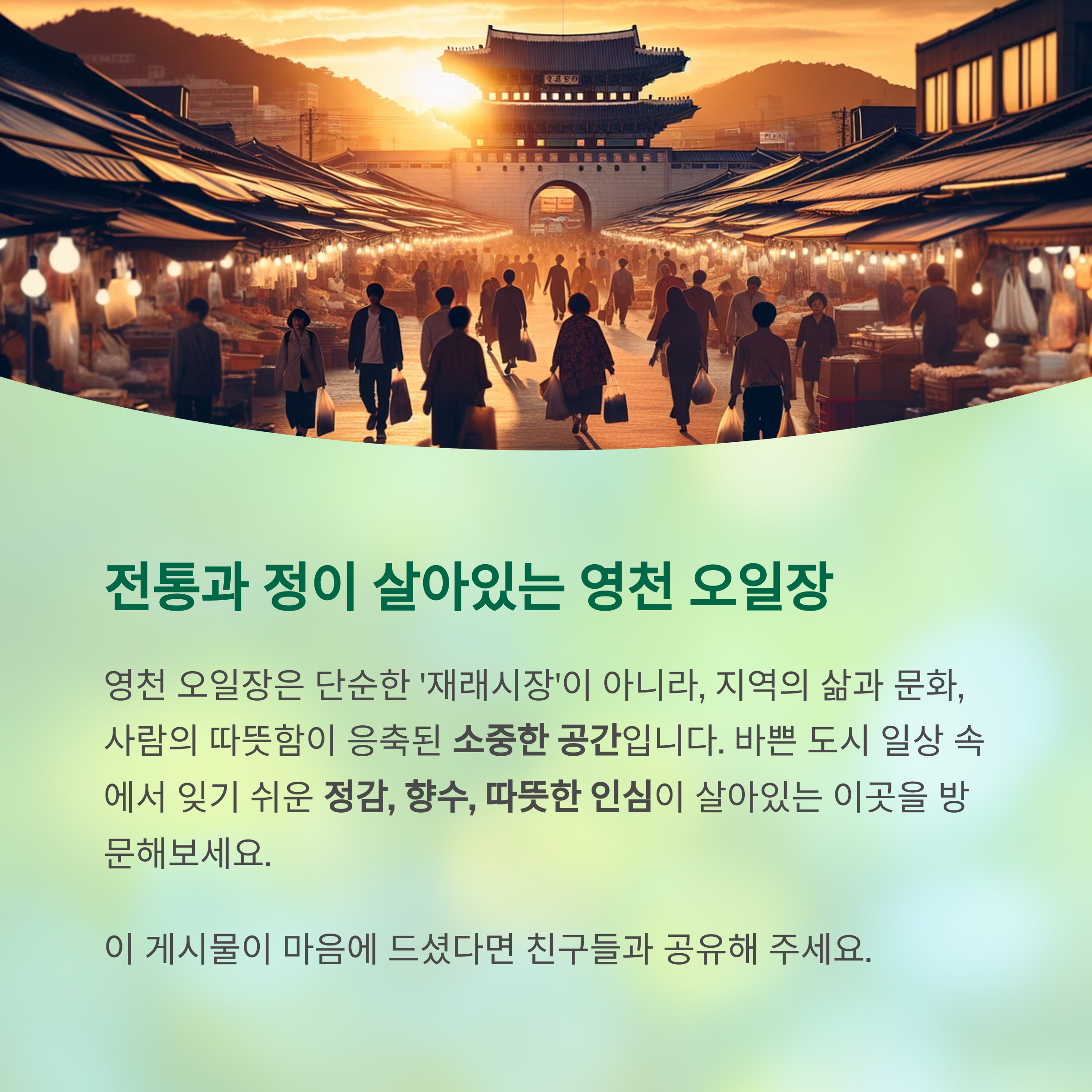 - 장소: 경북 영천시 완산동 일대 (영천공설시장 주변)