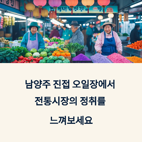 남양주시 진접읍은 수도권에 속하면서도 여전히 시골스러운 정취와 자연이 어우러진 지역입니다. 이곳에서 5일 간격으로 열리는 진접 오일장은 지역 농산물, 노점 간식, 직접 만든 장류와 반찬 등이 가득한 생활밀착형 전통 장터로 꾸준히 사랑받고 있죠. 주변 지역민은 물론, 도심에서 벗어나 시골장 체험을 원하는 분들에게도 추천되는 숨은 명소 중 하나입니다. 😊