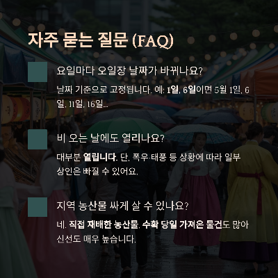 ❓ 요일마다 오일장 날짜가 바뀌나요?