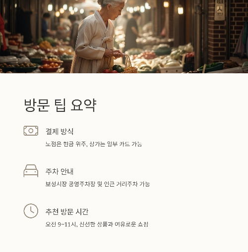 | 🚗 주차 안내 | 보성시장 공영주차장 / 인근 거리주차 가능 |