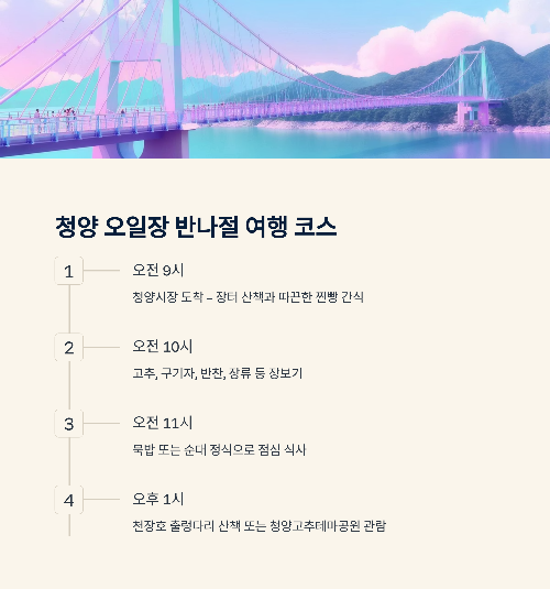 청양 오일장은 빠르게 돌아가는 도시 생활 속에서 잠시 멈춰 서서 시골 인심과 자연의 먹거리를 느낄 수 있는 특별한 공간입니다.