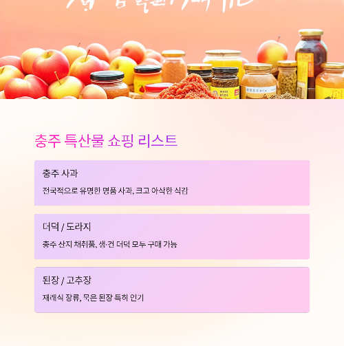 특산물 쇼핑 (사과, 장류, 묵나물 등)